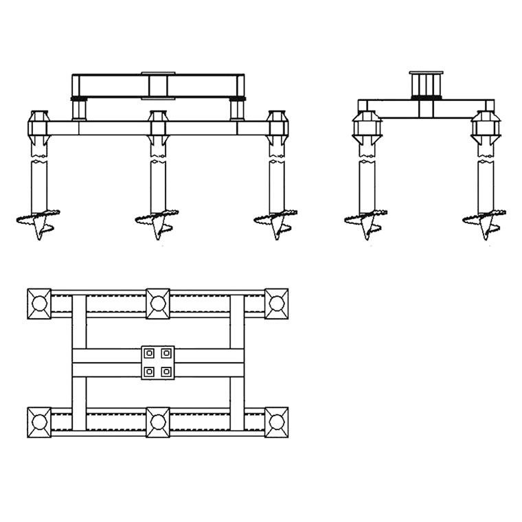 При создании высоковольтных линий электропередач в местах поворота необходимо обращать внимание на создание фундаментной базе. Ведь при изменении направления проводов, находящихся под высоким напряжением, необходимо обеспечивать большую прочность стоек ЛЭП. Именно для этой цели служат фундаменты с использованием винтовых свай. Официально они называются предназначенными для свободностоящих анкерно-угловых опор. Если рассматривать модификации фундаментных основ на винтовых сваях для анкерно-угловых стоек ЛЭП, то наиболее распространёнными среди них являются: