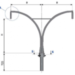 Данные размеры могут варьироваться и корректироваться исходя из размера и типа опор, осветительных приборов. Принятый стандарт кронштейнов – это одно или двух рожковые, но существуют и трех, четырех рожковые. Принятые параметры для обозначения изделий прописываются в виде формулы KN-H-B-C-X, где указаны: