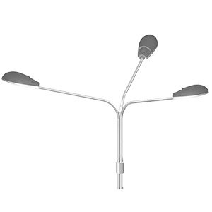 Торшерный кронштейн К31-0,5-0,6-1-5 трехрожковый– элемент, который получил распространение ввиду своей низкой стоимости и возможности создания систем освещения. Количество допустимых освещающих деталей может достигать 5. Они прикрепляются на кронштейн, выступающий на 20-30 см над опорой.