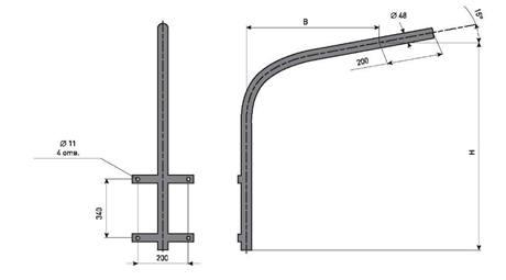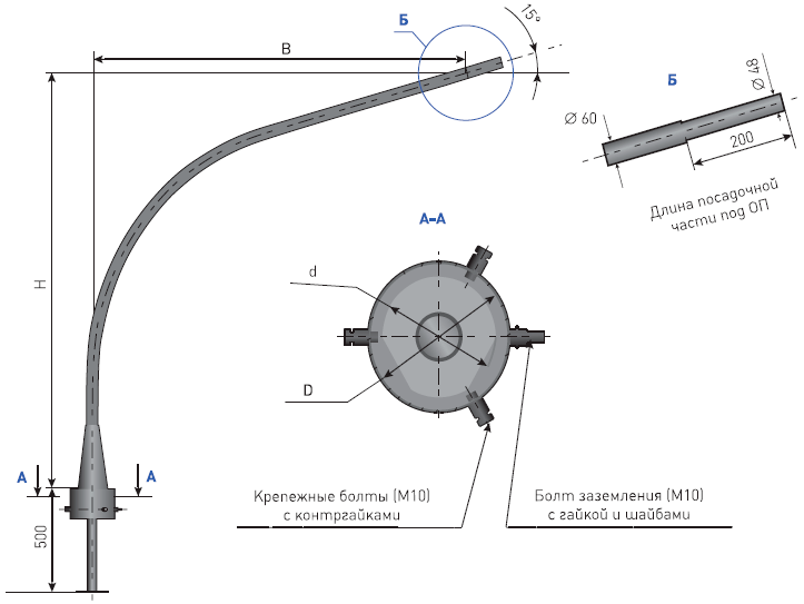 Кронштейн однорожковый закрепляется в верхней части столба, поэтому крепежные элементы несут повышенную нагрузку. Так же они обеспечивают легкий и быстрый монтаж.