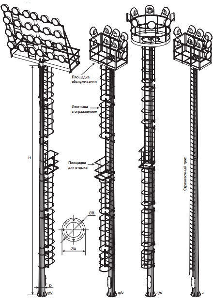 Компания ООО «Рус-опора» в Рязани — надежный партнер в производстве металлоизделий, в том числе высокомачтовых опор ВМОН-35(30)-л/о. При наличии собственного производства наше предприятие предлагает изготовление таких металлоконструкций с учетом всех пожеланий клиента. Данные мачты предназначены для монтажа осветительных приборов, они освещают различные площадки от складов до аэропортов, высота конструкции 35 метров.